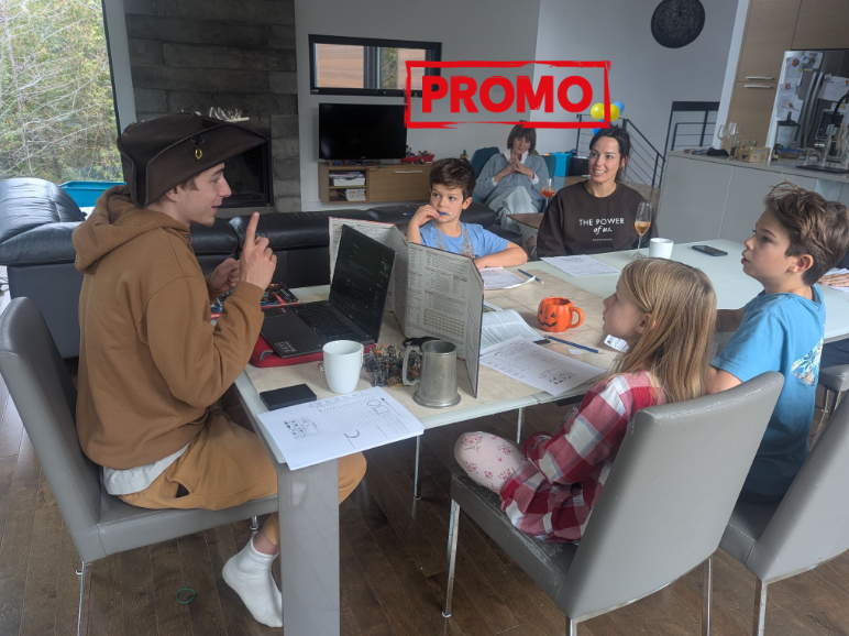 Tarif 1-4 enfants (2h min, moyenne du groupe 8 ans+) : 49 $ pour la première heure d’aventure, puis 39 $/h pour prolonger la quête. Une fois que les enfants sont couchés, le tarif passe à 24$/h